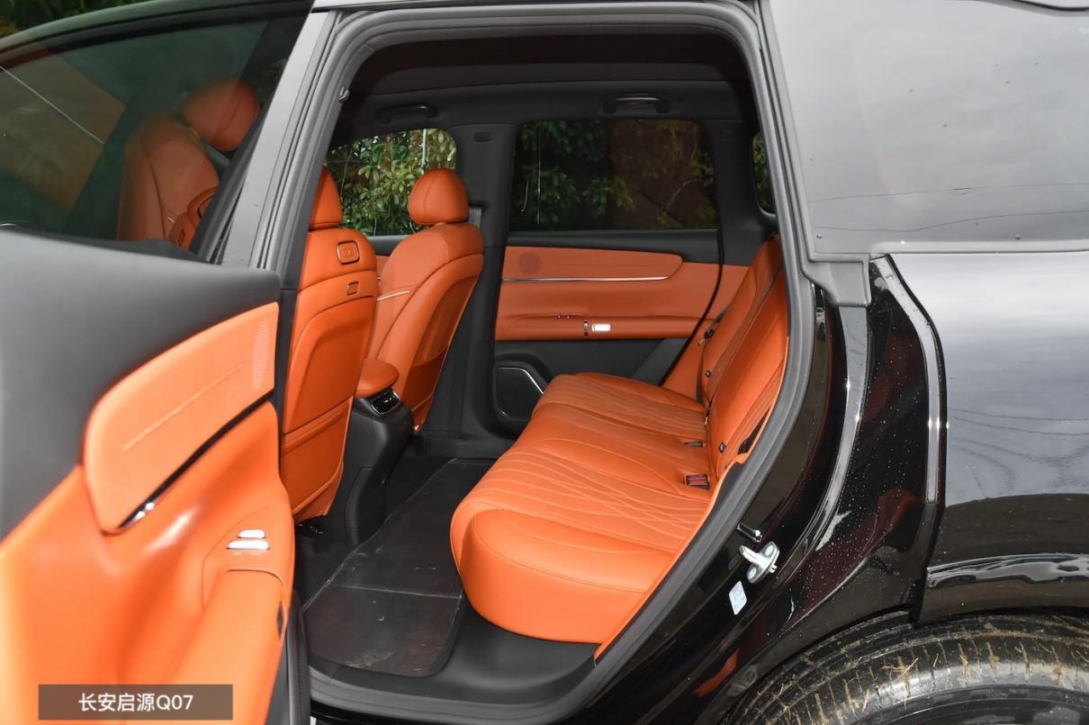 长安启源Q07得益于尺寸、有接近C级车的空间,二排层高接近1.24米,加上横纵距离都超过了1米,要是有娃家庭也能让孩子在这儿自由活动。