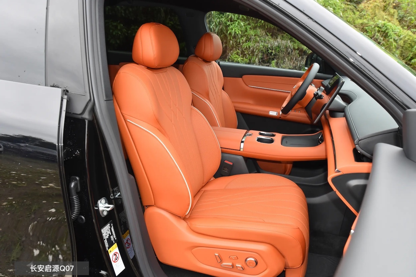 长安启源Q07则有了主副驾10向电动调节、副驾零重力座椅还带有电动腿托,除了二排有加热通风功能外,还支持靠背电动调节,配合全车4头枕,就算一家坐满也能保持宽松。此外,车辆还配有二排桌板+抽屉,行车途中要办公,或是小孩吃东西、写作业都可支持。