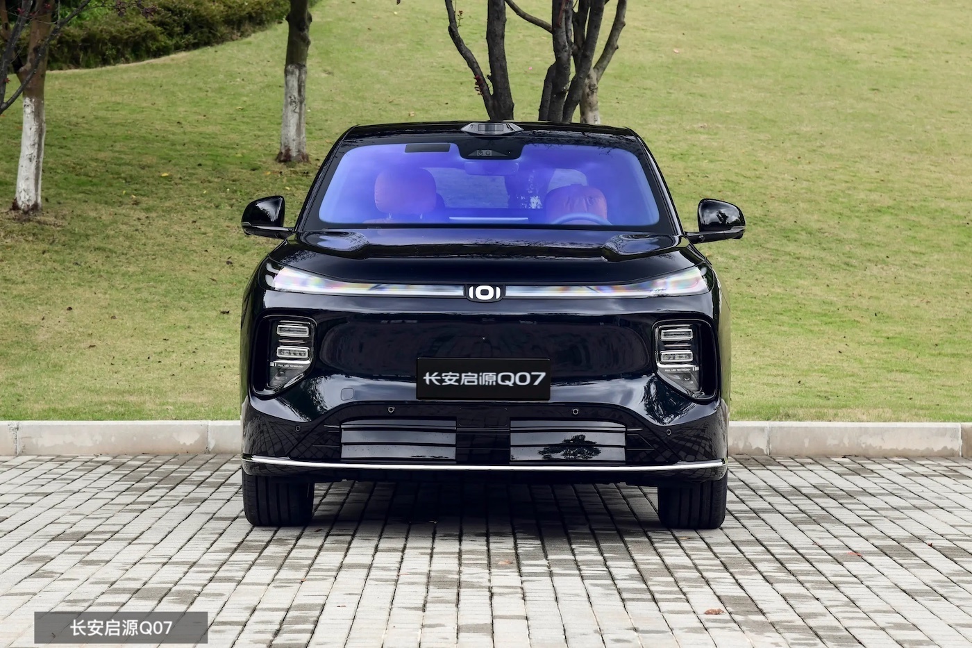长安启源Q07则主打个气质感,像贯穿光带、分体大灯,还有尾部的光环样式尾灯,除了辨识度外,都有种豪华科技感。而且它的大车身达到了4837/1920/1690mm、轴距也有2905mm,比同级要大一圈,加上悬浮D柱看着是要更挺拔些。